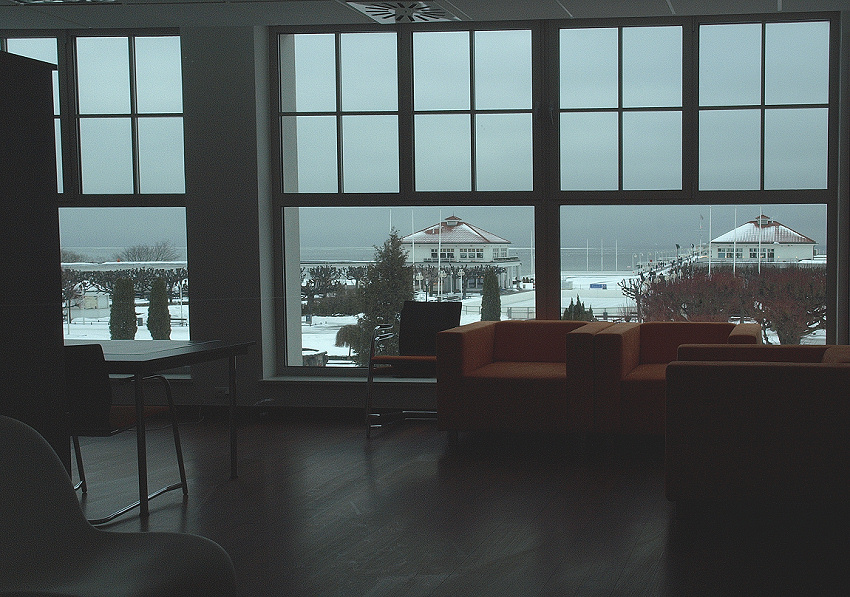 Zimowy Sopot, widok na Plac Zdrojowy i molo z biura PGS, 10.02. 2012