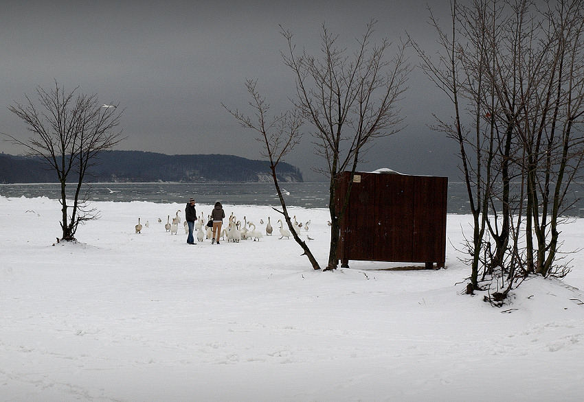 Zimowy Sopot, widok na plażę z szaf± z filmu Polańskiego, 10.02. 2012