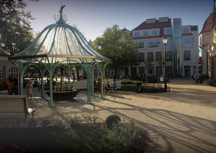 Park Południowy w Sopocie po rewitalizacji, fontanna z solanką przed Zakładem Balneologicznym, 08.07. 2010