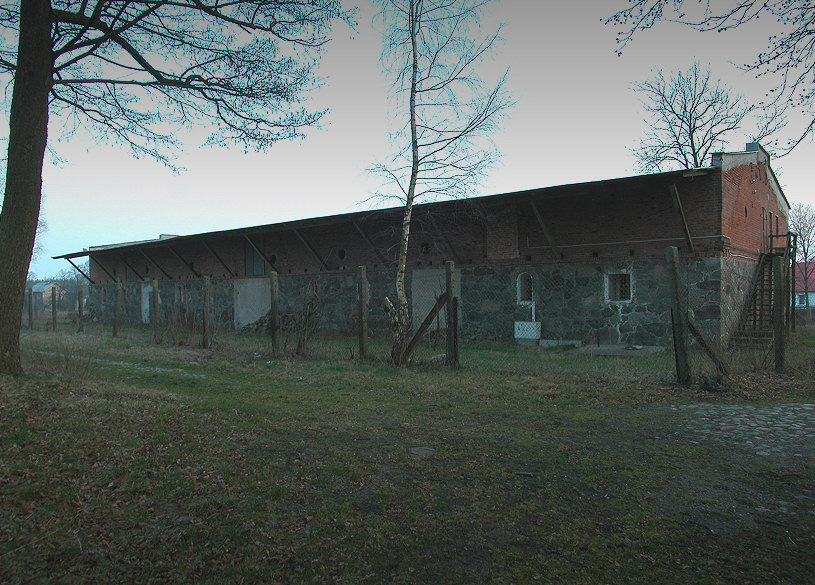 Małkowo, budynek gospodarczy, obora (zburzona)