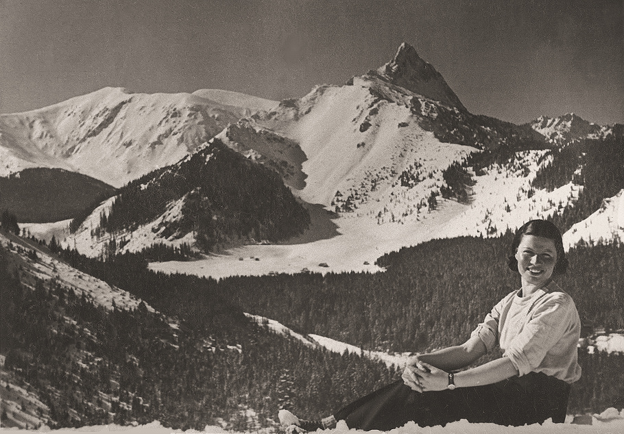 Archiwalne zdjęcia mojej mamy, Zakopane, na tle Giewontu z Nosala, ~~1937 - 38