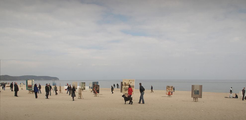 Wernisaż Marka Okrassy na plaży w Sopocie, rysunek i malarstwo, 02.05. 2010