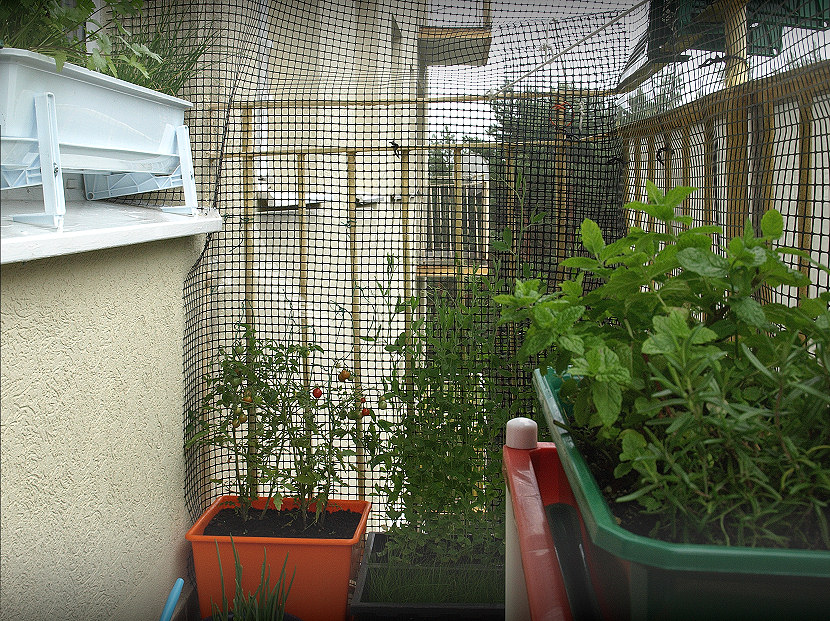 Mój balkon z ziołami, trawą i groszkiem 02.07. 2012
