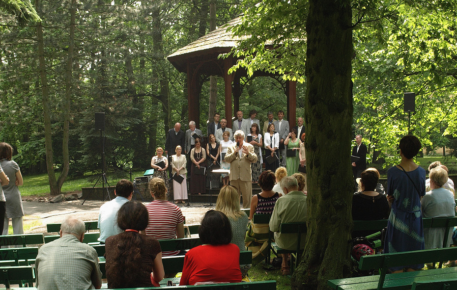 Polskiego Chóru Kameralnego pod dyrekcją Jana Łukaszewskiego w Parku Oliwskim, koniec przerwy, wyszło słońce, 30.06. 2012