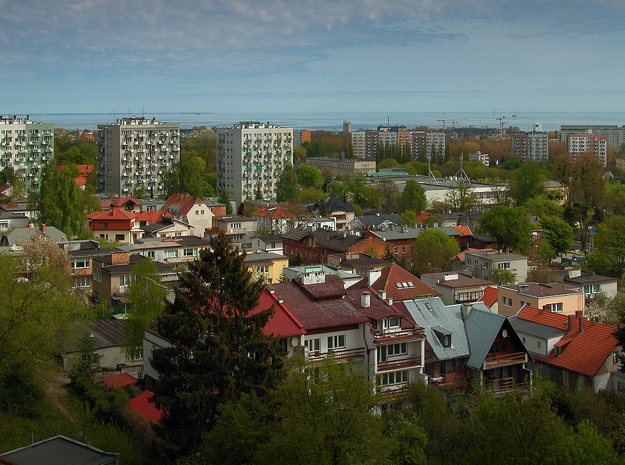 Oliwa, widok z okna wieżowca na ulicy Karpackiej 8 na Zatokę Gdańską