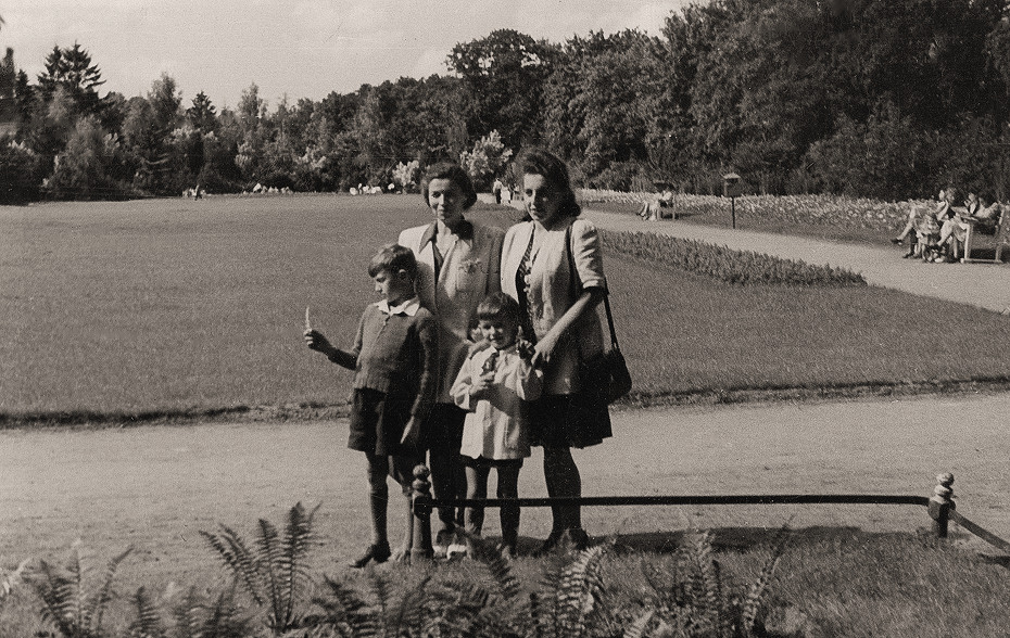 Archiwalne zdjęcia z albumu rodzinnego, w Sopot, w Parku Północnym z kuzynką, ~~1946, 1947 r.