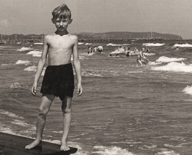 Archiwalne zdjęcia z albumu rodzinnego, na plaży sopockiej, 1948 r.