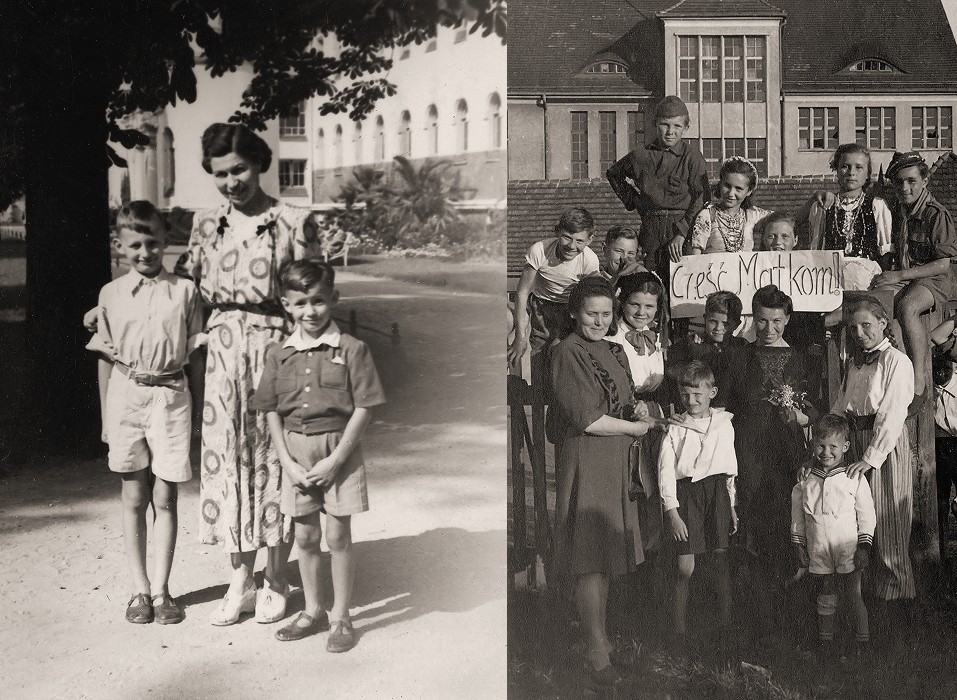 Archiwalne zdjęcia z albumu rodzinnego, Sopot, przed ówczesnym Zakładem Kąpielowo - Leczniczym, i przed szkoła na ul Polnej 16/20, ~~ 1947, 1946 r.