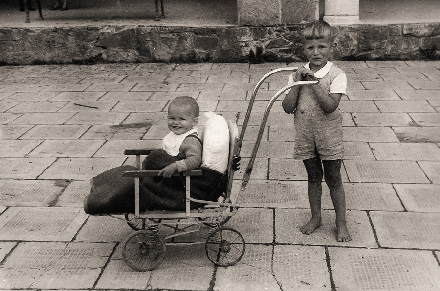 Archiwalne zdjęcia z albumu rodzinnego, Rabka, brat w „okupacyjnym” wózku, 1944 r.