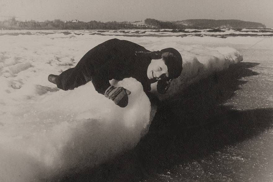 Archiwalne zdjęcia z albumu rodzinnego, Sopot, na plaży w zimie 1948 r.