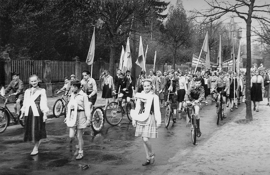 Archiwalne zdjęcia z albumu rodzinnego, Sopot, przemarsz na pochód 1 - Majowy, 1952 r.