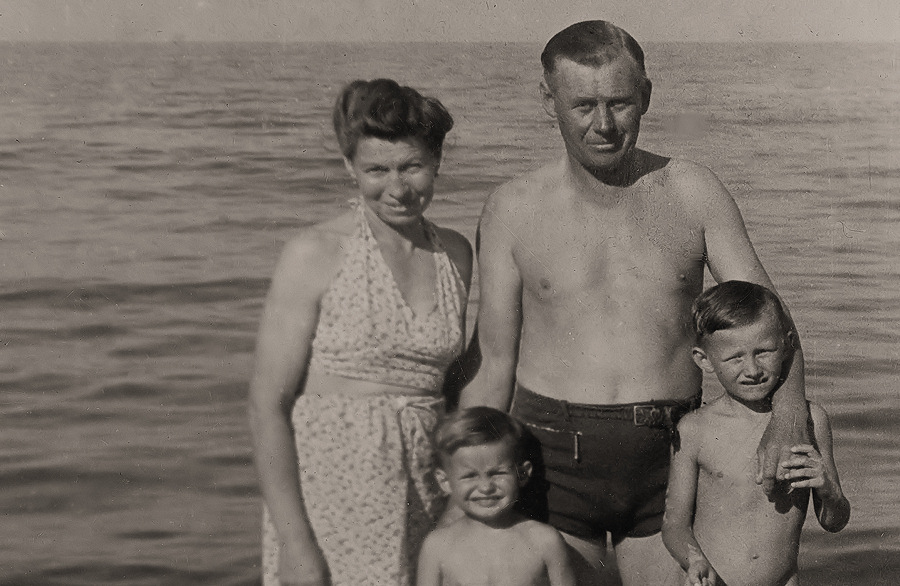 Archiwalne zdjęcia z albumu rodzinnego, na sopockiej plaży, 1945 r.