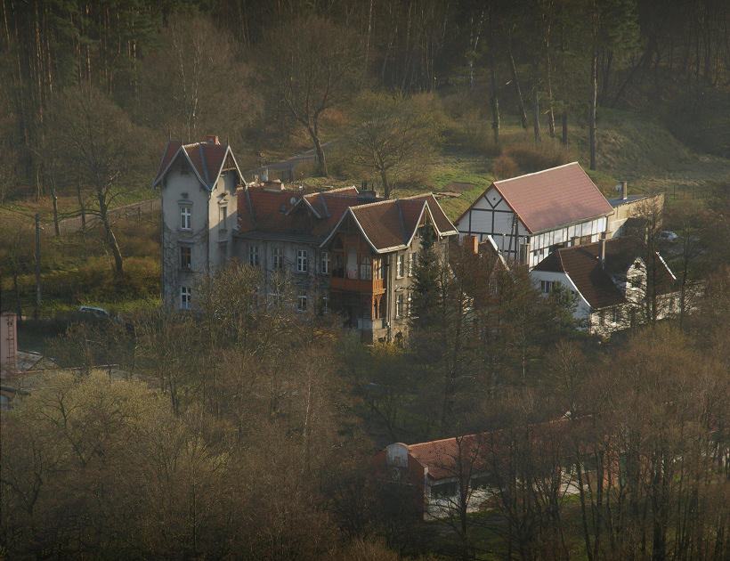 Oliwskie, sopockie i gdyńskie spacerki, widok Oliwy ze wzgórza Pachołek, Zamek Mormonów, 19.04. 2009