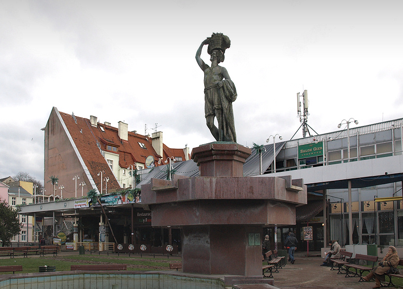 Widok rze¼by Jasia Rybaka na tle restauracji Alga na ul. Monte Cassino w Sopocie, 31.12.2009