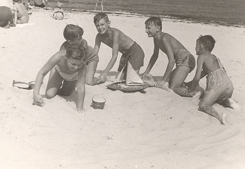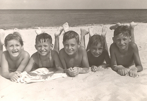 Na pierwszym zdjęciu w środku Feliks, autor pierwszy od prawej. Na ostatnim w ogródku przy domu, 1951 rok, fot. J.Petrajtis