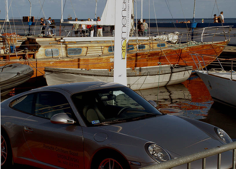 Targi „Wiatr i Woda” w Gdyni i widoki miasta w dniu 09.08. 2008, Porsche 911 i jol serii Opal IV „Bosman II"