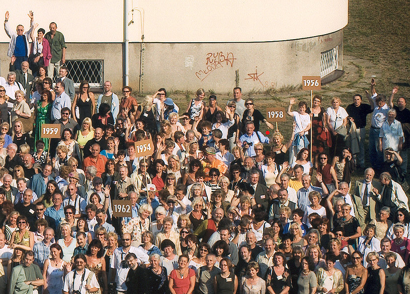 w Orłowie, 9 września 2005 r., wspólne zdjęcie, przy czerwonej kropce my, 1958