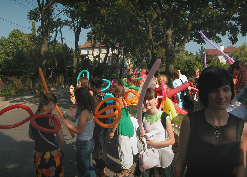 przed budynkiem szkoły, powitanie absolwentów przez uczniów szkoły