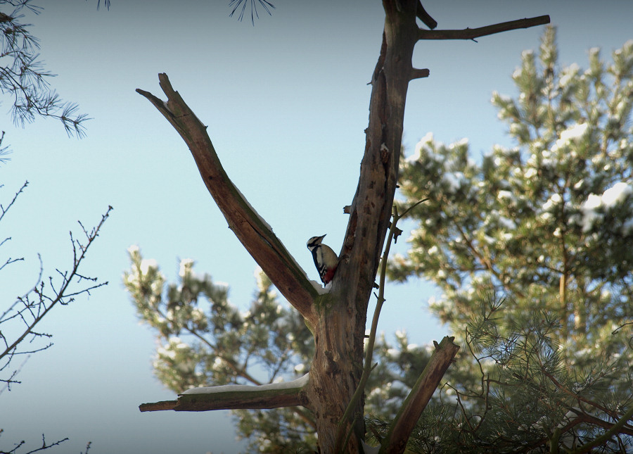 Oliwa, dzięcioł w Trójmiejskim Parku Krajobrazowym, w okolicy ul. Karpackiej, 01.02.2010.