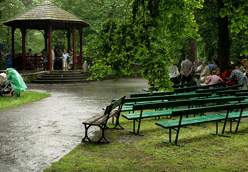 Koncert Polskiego Chóru Kameralnego pod dyrekcją Jana Łukaszewskiego w Parku Oliwskim, przerwa z powodu deszczu, 30.06.2012. ![]() © Fot. Ryszard Petrajtis