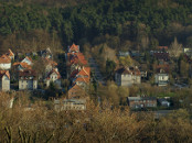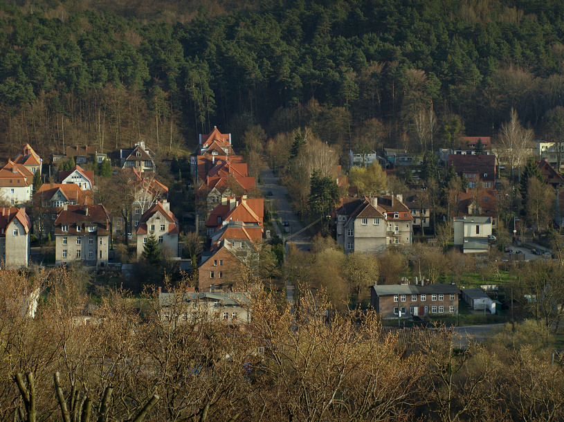 Widok Oliwy ze wzgórza Pachołek, ul. Kwietna i Słoneczna, 19.04.2009.