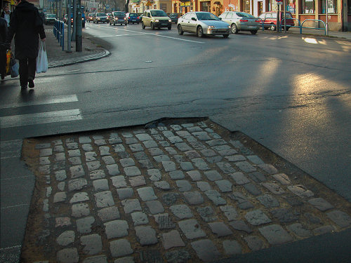 Odkrywka bruku na skrzyżowaniu ul. Polanki i Stary Rynek Oliwski, 23.11.2007.