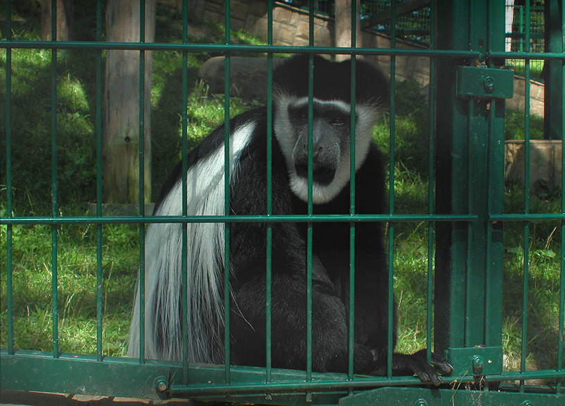 Smutek zza kraty, gereza abisyńska (Oliwskie zoo jako jedyne w Polsce dochowało się potomstwa). 15.07.2007.