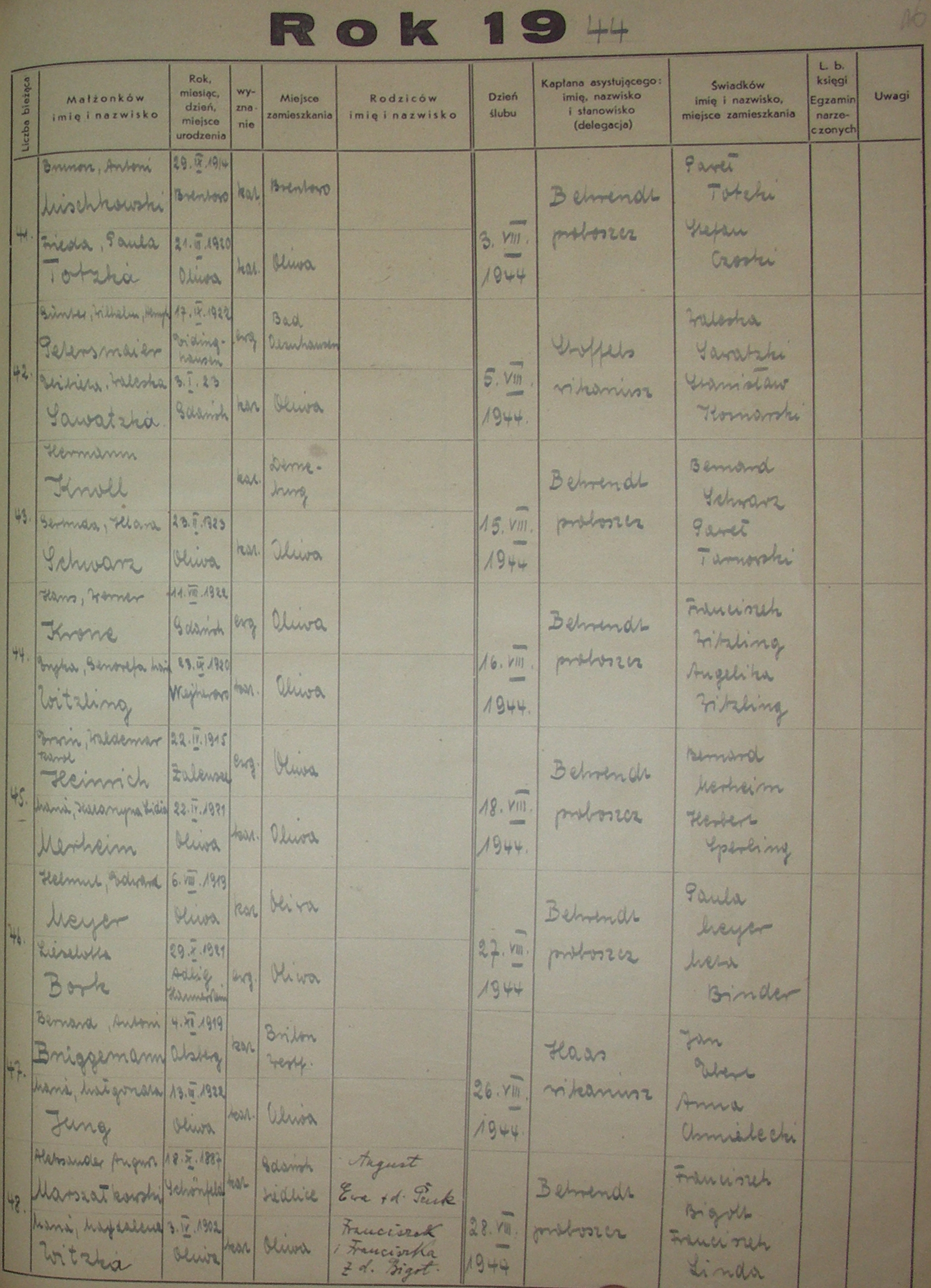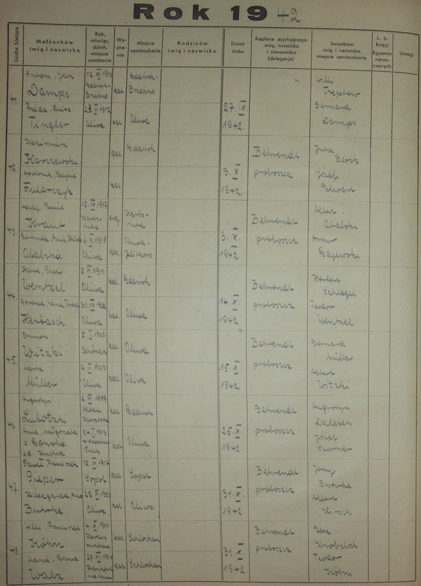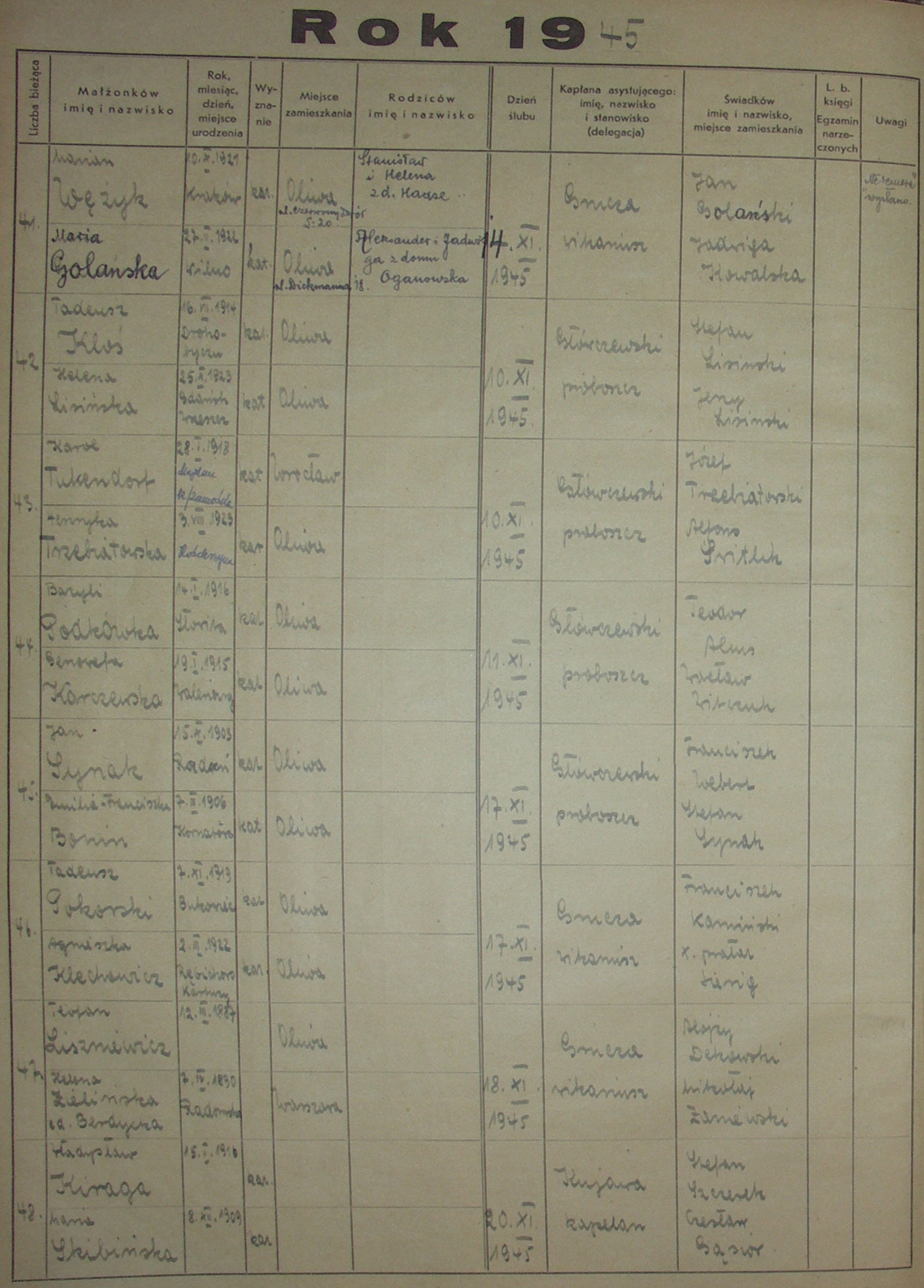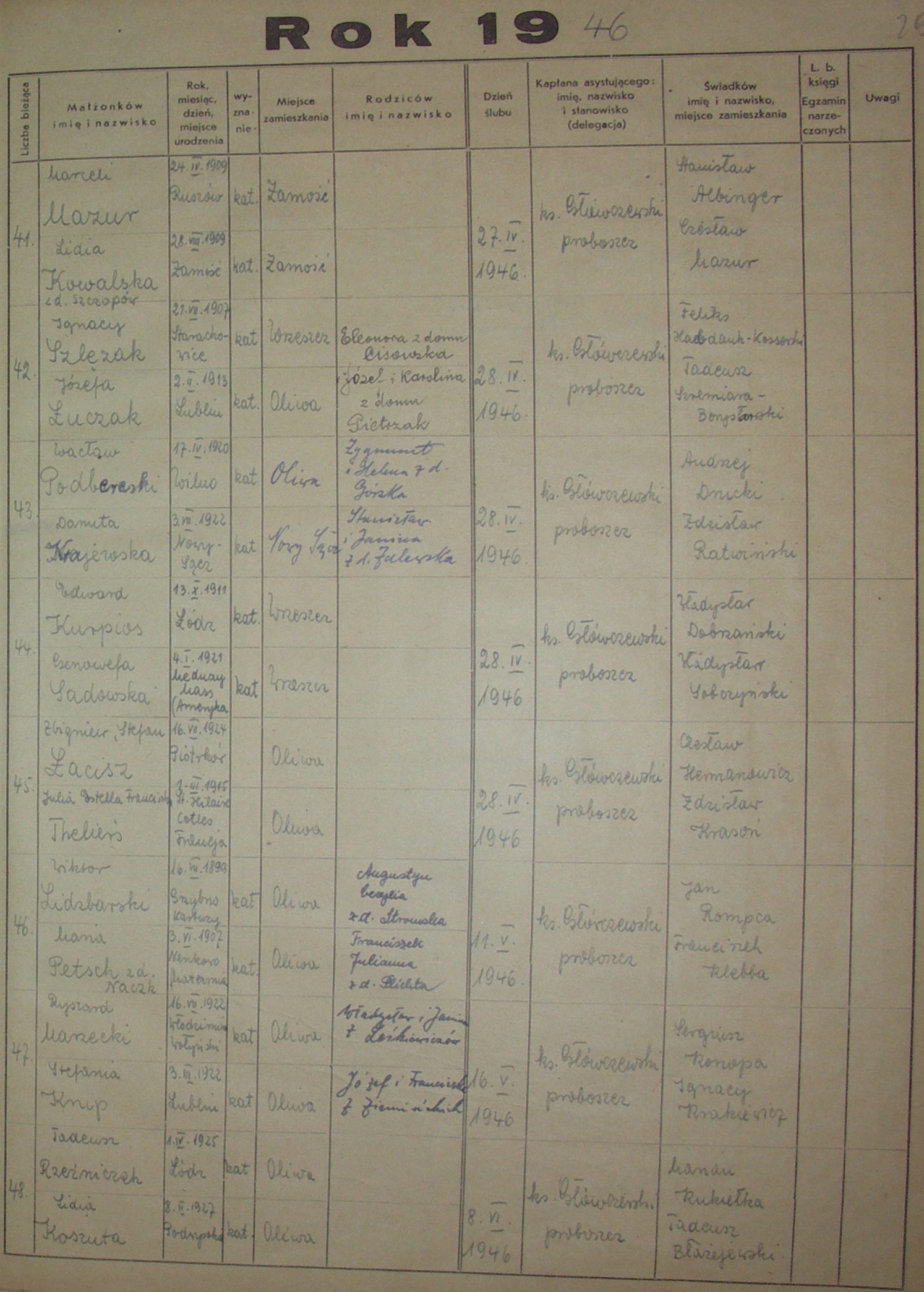 Księga Ślubów 1941-1950 › 1941, 1942, 1943, 1944, 1945, 1946, 1947, 1948, 1949, 1950