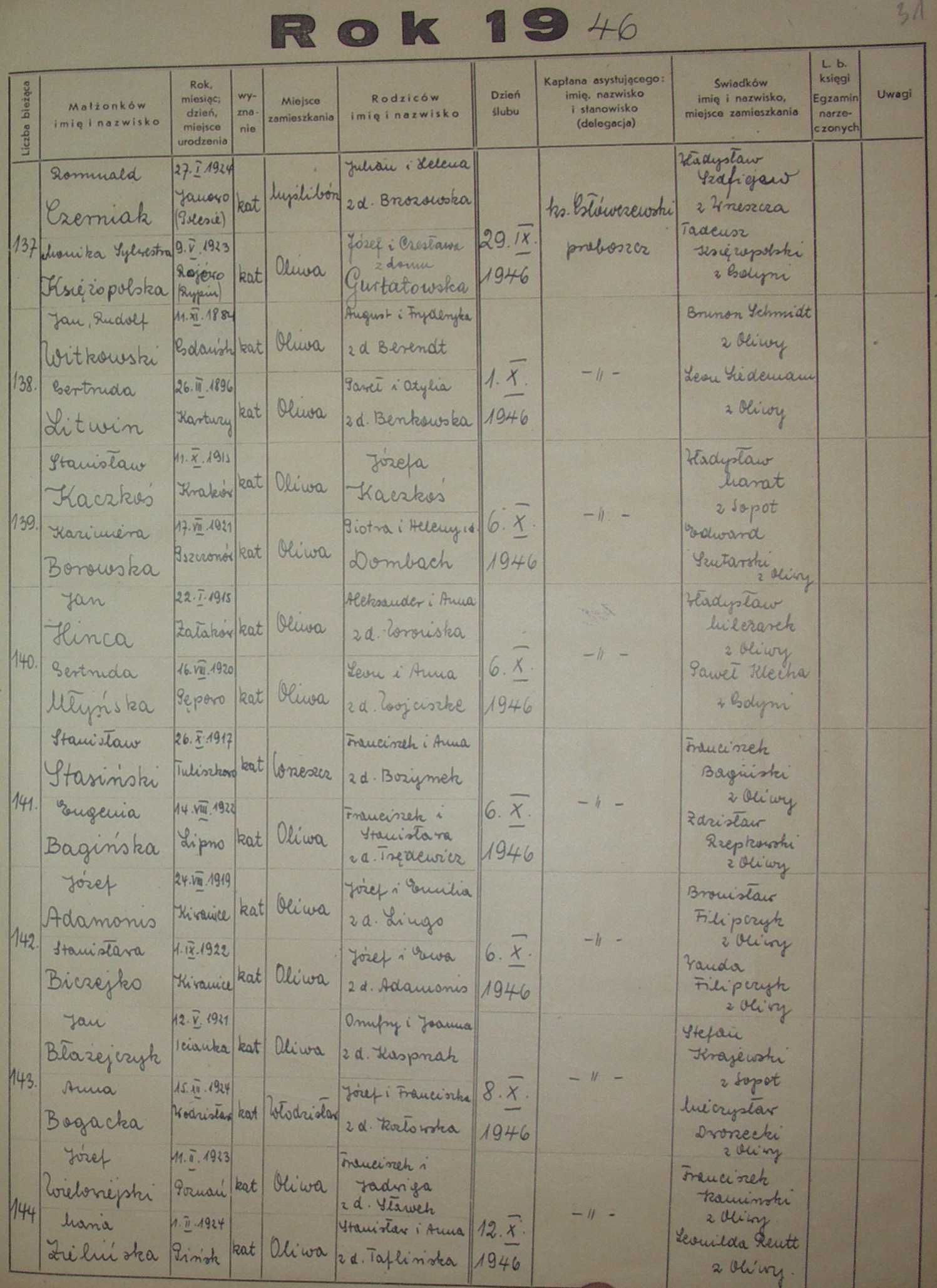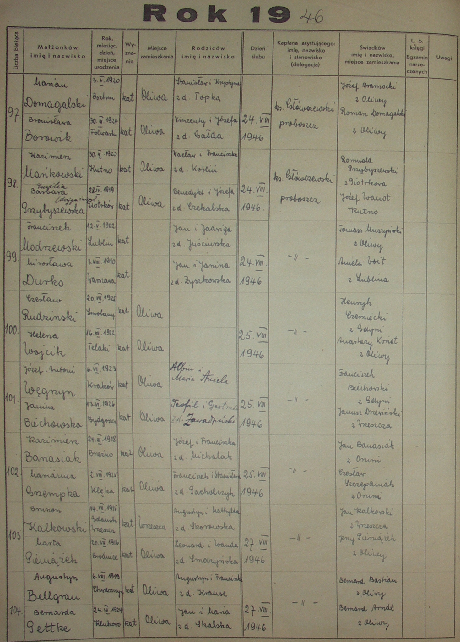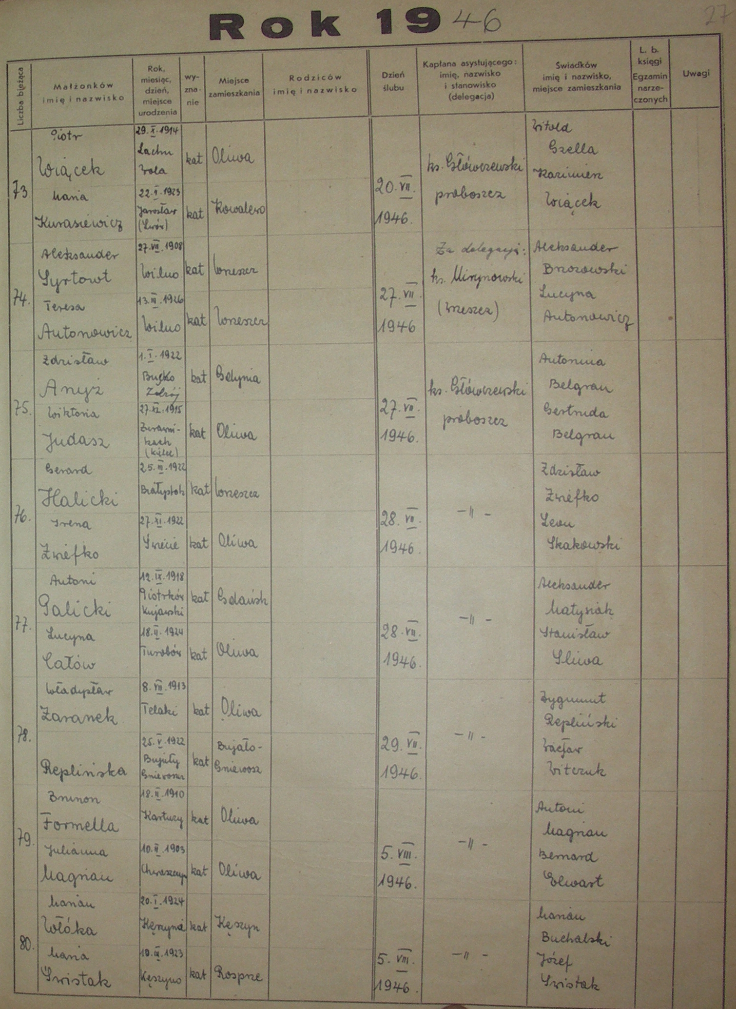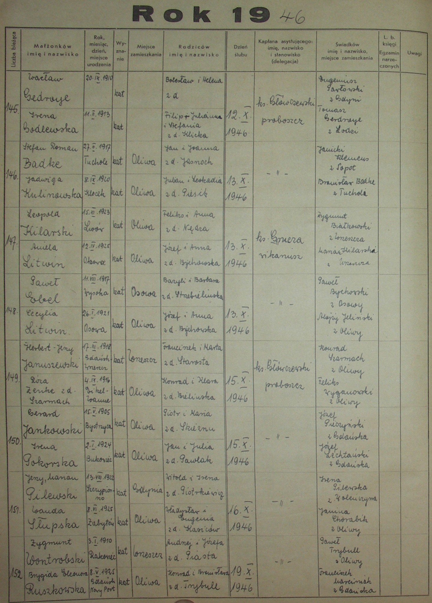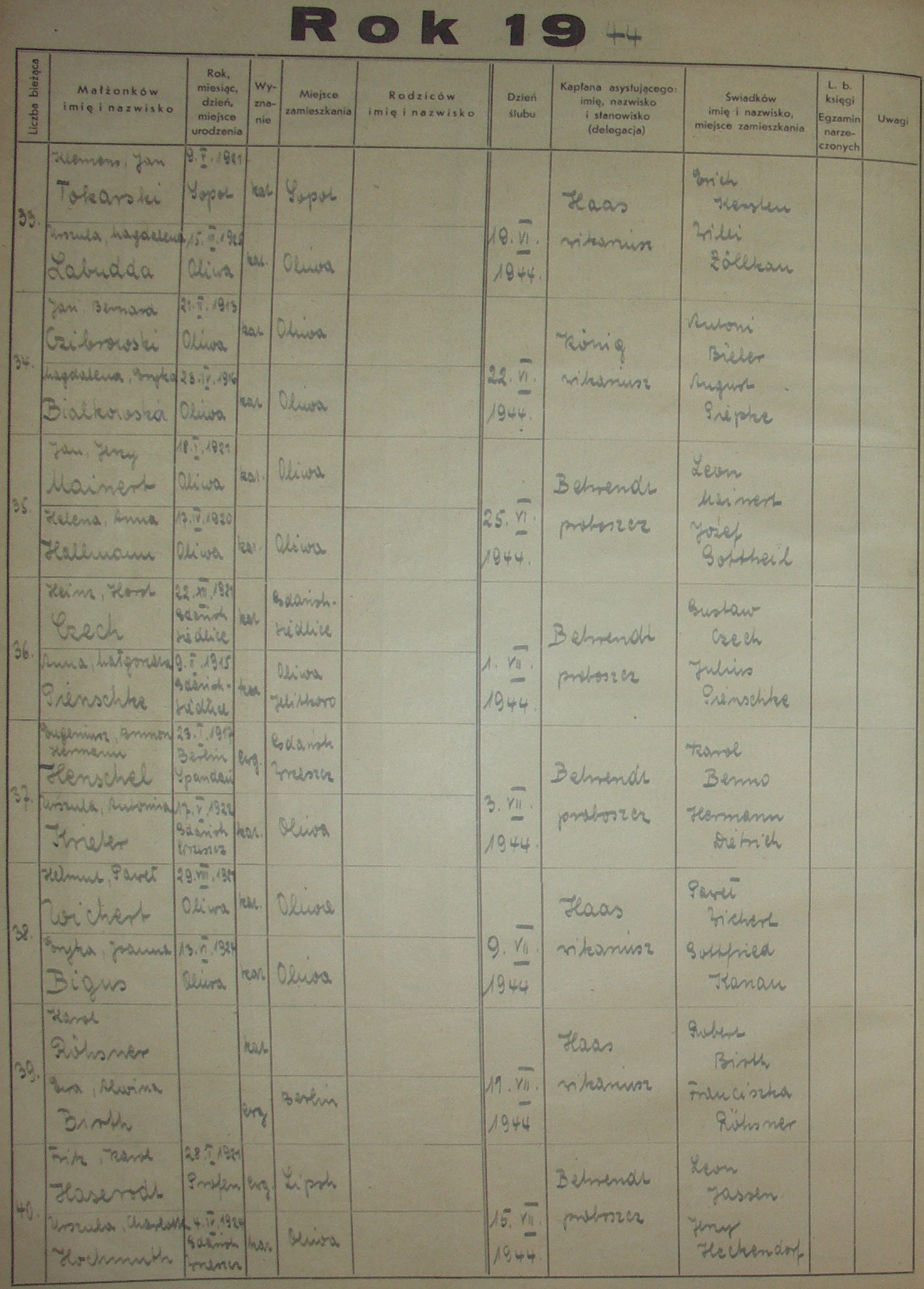 Księga Ślubów 1941-1950 › 1941, 1942, 1943, 1944, 1945, 1946, 1947, 1948, 1949, 1950