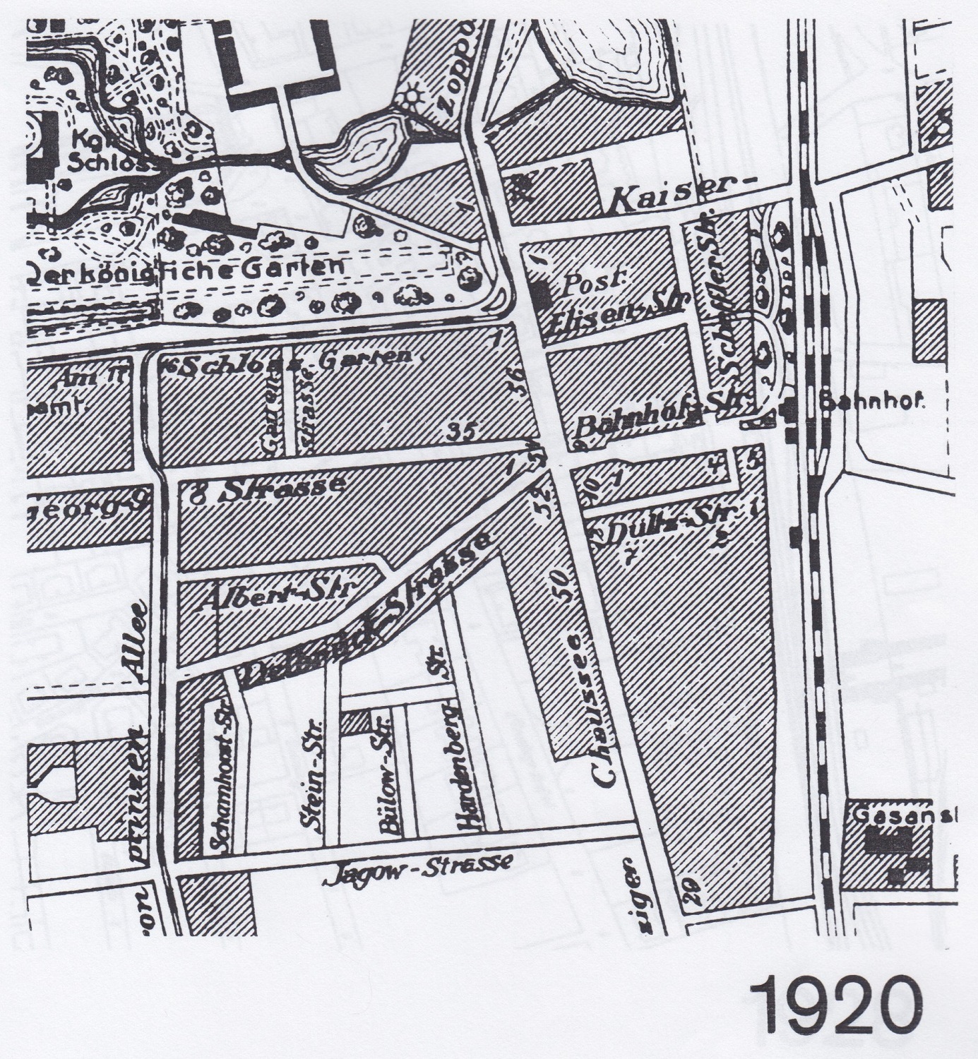 Na planie z ok. 1910 r. pojawiły się wytyczone nowe ulice. Po wschodniej stronie ul. Grunwaldzkiej jest już ul. Hołdu Pruskiego, ul. Ceynowy, Majkowskiego. W rejonie środkowym - ulice: Asnyka, Kaprów, Wita Stwosza, Żeromskiego. W części zachodniej wytyczono ulice: Leśną, Słoneczną, Podhalańską i Alfa Liczmańskiego. Zabudową wypełniają się kwartały między dworcem kolejowym i ul. Grunwaldzką. Wypełnia się kwartał między ul. Opata Rybińskiego - Kaprów - Asnyka i Wita Stwosza. Wypełniają się kwartały po obu stronach Polanek i Obrońców Westerplatte, Leśnej, Podhalańskiej i Alfa Liczmańskiego. Zabudowuje się trapezowaty kwartał na południe od ul. Kwietnej.