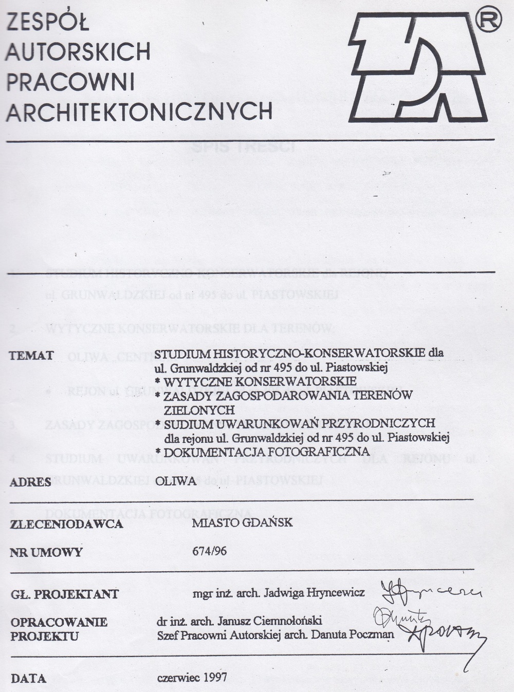 Dla: Urząd Miejski w Gdańsku (umowa nr 675/96)