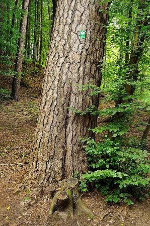 Przy Kleszej Drodze, po której w tym miejscu prowadzi krótki odcinek czarnego szlaku, rośnie od około 210 lat sosna pospolita, będąca pomnikiem przyrody. Ma ona 30 m wysokości, jej obwód w pierśnicy wynośi 325 cm. Pochylona jest w prawo, tak jak i wszystkie drzewa na tym zboczu.