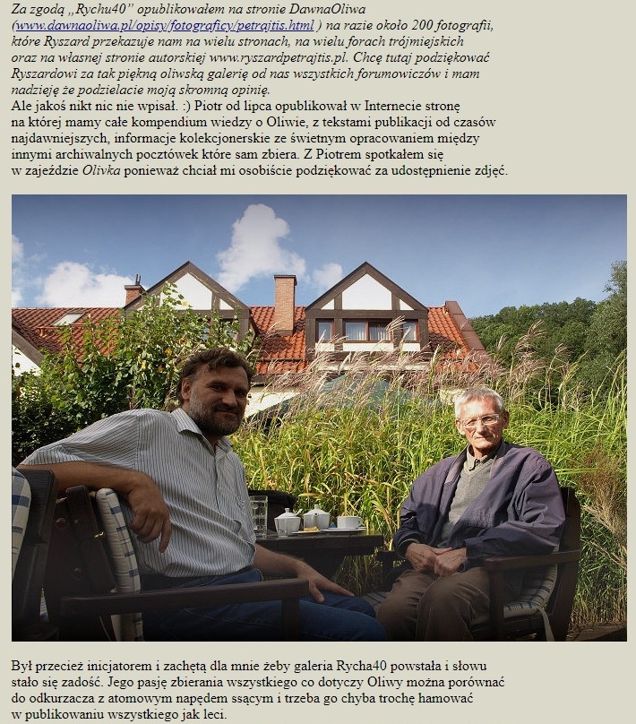 , w której mieszka od 1978 roku. I tymi swoimi pasjami dzieli się z nami na stronach www.dawnaoliwa.pl. Oszedł od nas 13. stycznia 2013 roku.