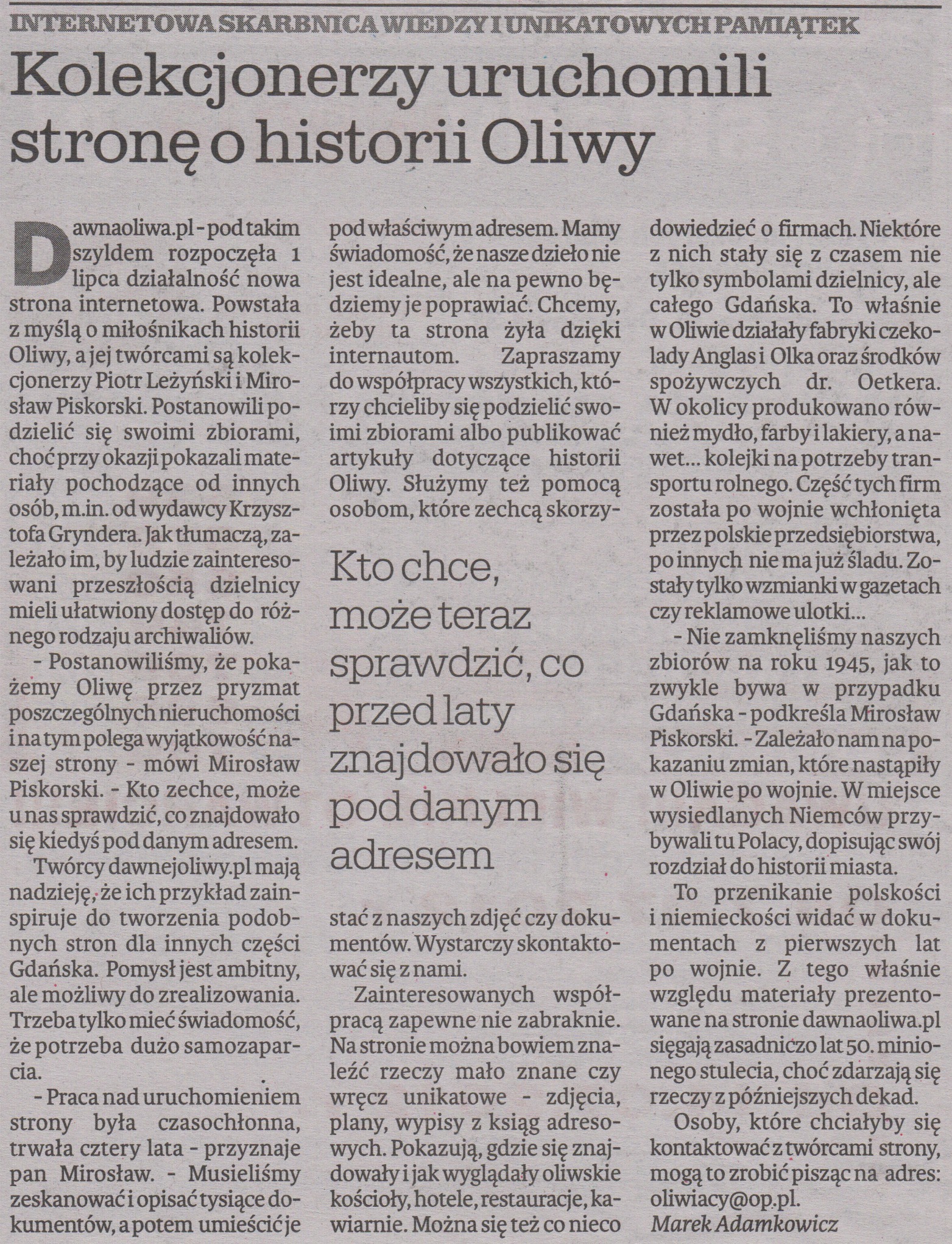 Do dziś wszystkie linki internetowe prowadzące do strony www.DawnaOliwa.pl są aktualne.