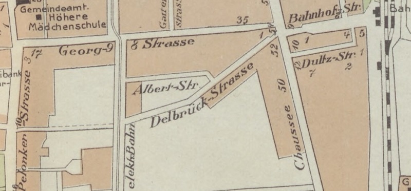 Delbrückstraße. Fragment mapy wydanej w 1919 roku. Zbiory Piotra Leżyńskiego.