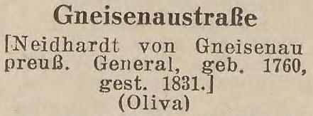 Gneisenaustraße. Frgment planu Oliwy z 1935 roku. Zbiory TPG Strefa Historyczna WMG.