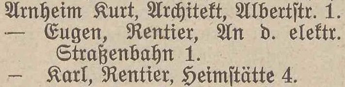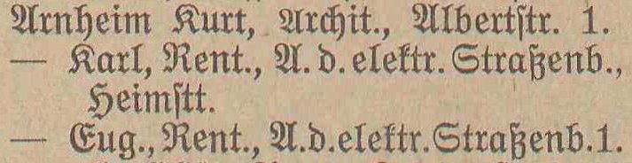 Karl Arnheim, Rentier, Heimstätte 4 (ul. ).
