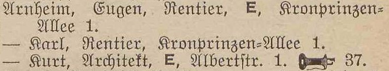Karl Arnheim, Rentier, Kronprinzenallee 1 (ul. ).