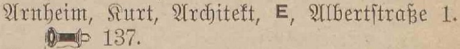 Kurt Arnheim, Architekt (E - w³aœciciel), Albertstraße 1 (ul. Asnyka). Tel. nr 37.