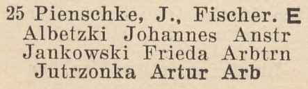 Jul. Pienschke. Książka adresowa z 1926 roku. Ze strony: wiki-de.genealogy.net.