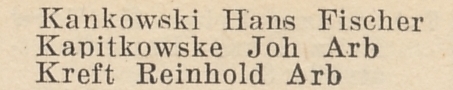 Kreft. Książka adresowa gminy Oliwa z 1925 roku. Źródło: Mieszkańcy Jelitkowa - 1909-1925. DawnaOliwa.pl.
