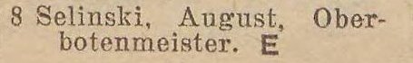 August Selinski. Książka adresowa z 1933 roku. Zbiory Pomorskiej Biblioteki Cyfrowej.