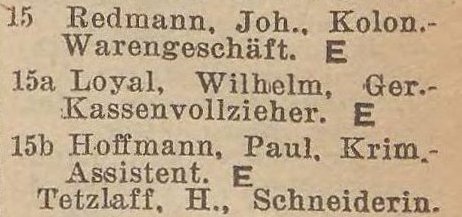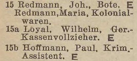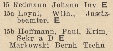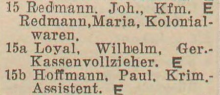 Johann Redmann. Wilhelm Loyal. Pail Hoffmann. Książka adresowa z 1942 r. Zbiory Pomorskiej Biblioteki Cyfrowej.