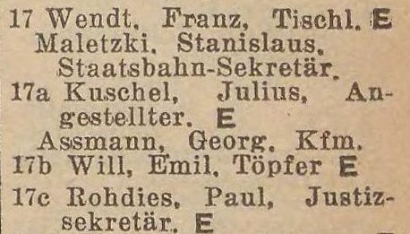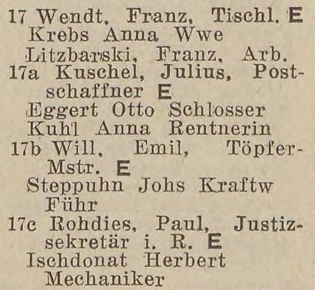 Franz. Wendt. Julius Kuschel. Viktoria Will. Paul Rohdies. Ks. adr. z 1940-1941 r. Zbiory TPG Strefa Historyczna WMG.