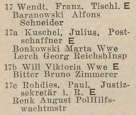 Adres: Blücherstraße 17. Gertruda Wendt (ur. 1924, zm. 30.03.1944 - epilepsja). Źródło: , 03.1944 poz. 34.