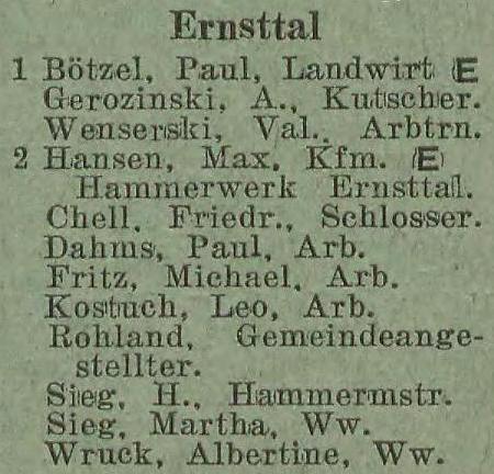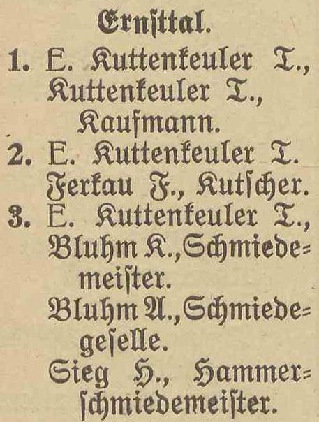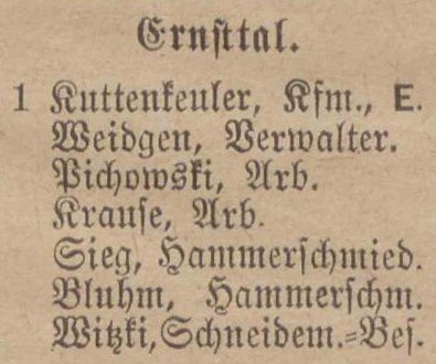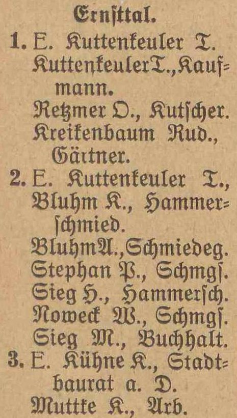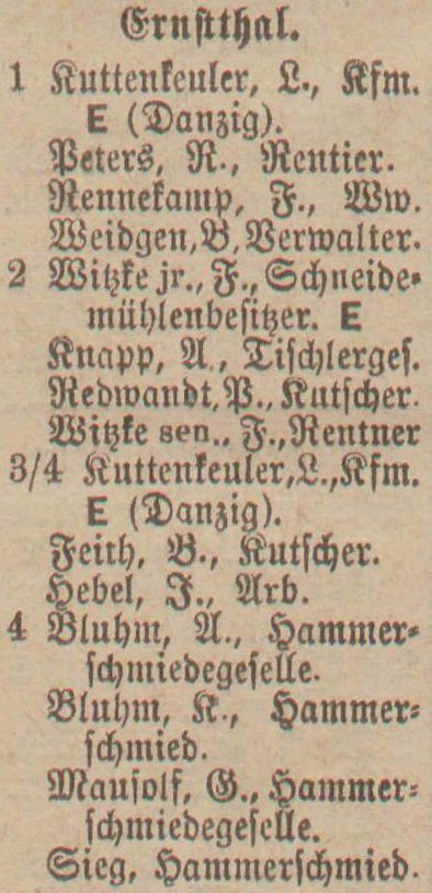 T. Kuttenkeuler. Ernstthal. Książka telefoniczna z 1911-1912 r. Przekazała Grażyna Niemyjska. Zbiory Pomorskiej Bibl. Cyfrowej.