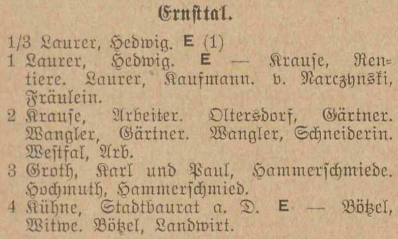 Mieszkańcy posiadłości w roku (Ernstthal 4):