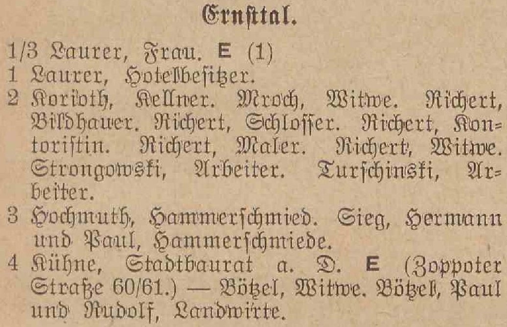 Laurer. Kühne. Książka adresowa gminy Oliwa z 1916 roku. Zbiory Mirosława Piskorskiego.
