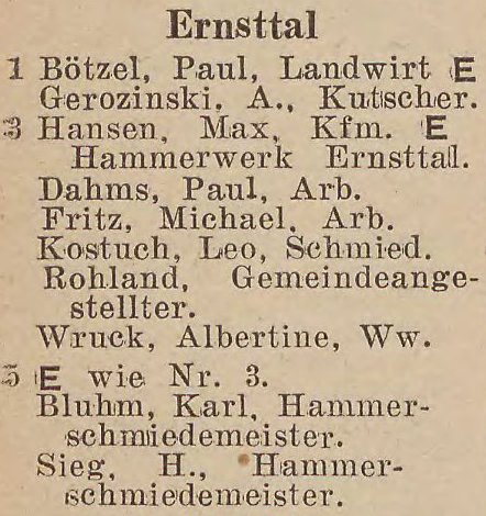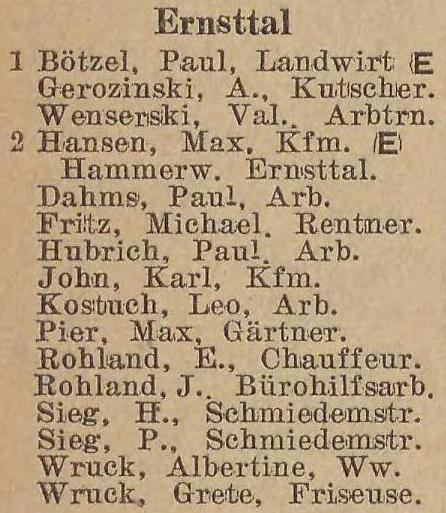 Mieszkańcy posiadłości w roku (Ernstthal 1):