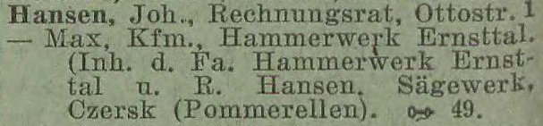 Paul Bötzel. Max Hansen. Książka adresowa z 1927 roku. Zbiory Pomorskiej Biblioteki Cyfrowej.